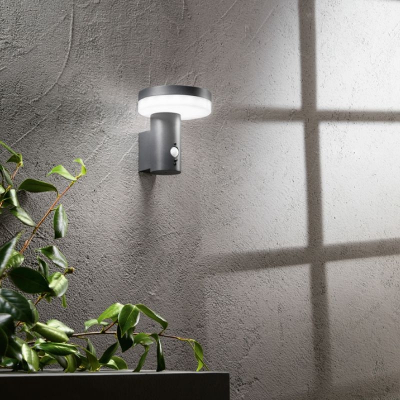 Cette applique murale solaire en aluminium anthracite offre un design moderne et minimaliste, idéal pour illuminer une terrasse, une entrée ou un jardin. Dotée d’un panneau solaire intégré, d’une LED SMD de 600 lm et d’un capteur de mouvement, elle assure un éclairage fiable et économe en énergie.