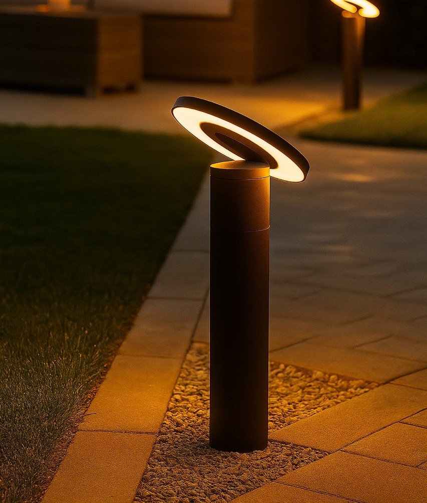 Offrez à vos espaces extérieurs un luminaire d’exception, une collection qui allie design contemporain, technologie LED. Le potelet CILIO, avec son anneau lumineux orientable à 360°, transforme chaque chemin, terrasse ou entrée en un véritable décor architectural.