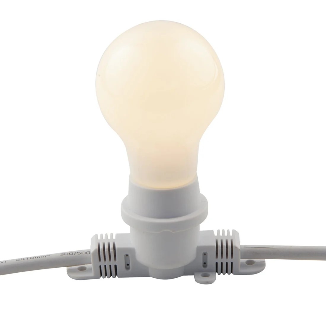 Équipée de douilles E27 étanches, la guirlande PICNIC garantit une installation sécurisée et durable. Les supports renforcés assurent une excellente tenue des ampoules tout en facilitant la fixation sur câbles, murs ou poteaux.