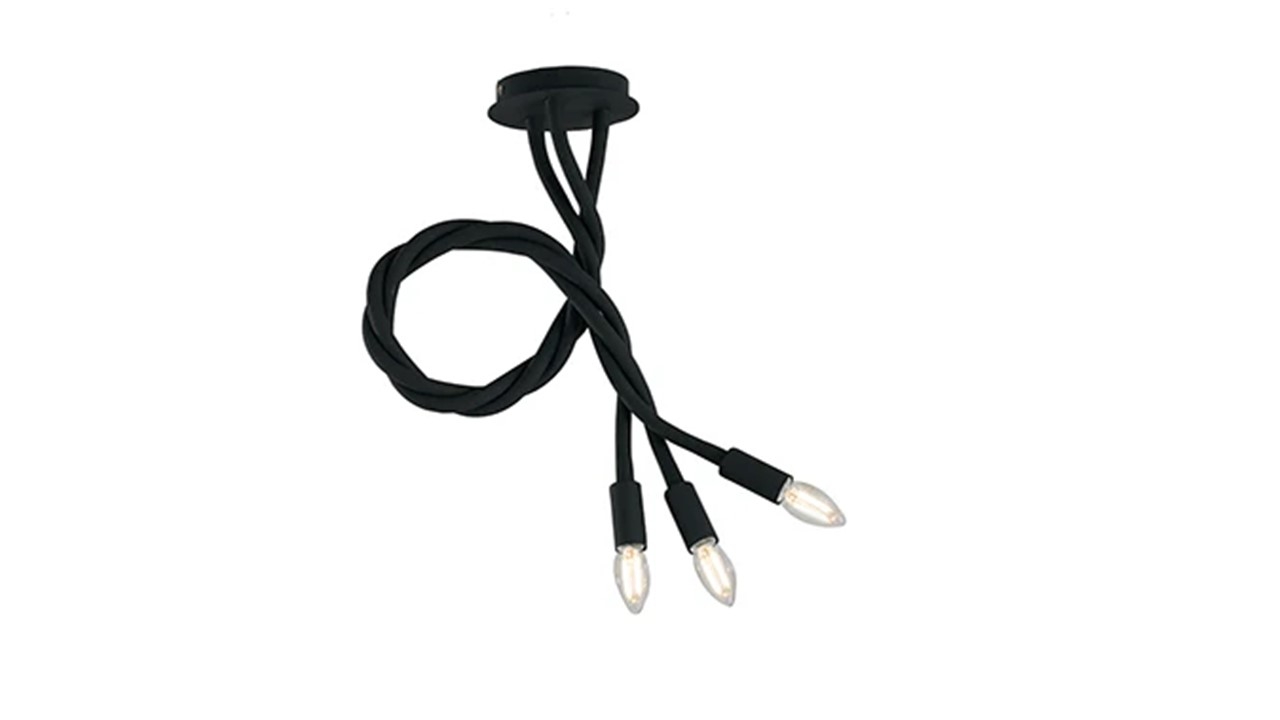 le plafonnier avec une structure métallique flexible recouverte de silicone noir ou blanc avec trois points lumineux.