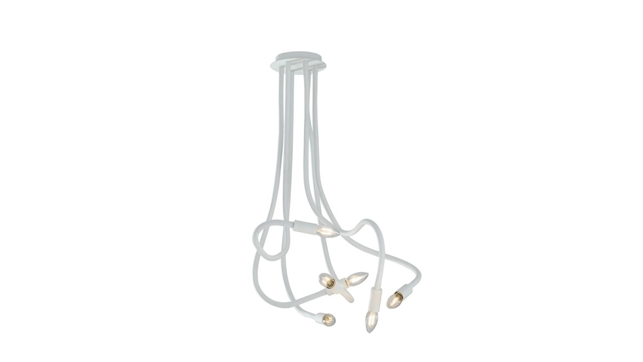 le plafonnier avec une structure métallique flexible recouverte de silicone noir avec six points lumineux.